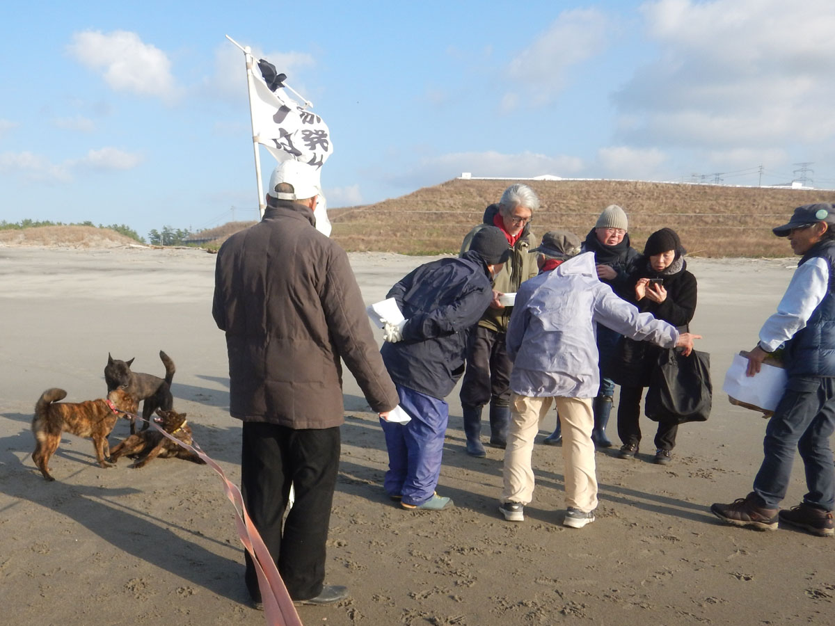 散骨式に参加する、左から祚是、妥蔵、卓廚