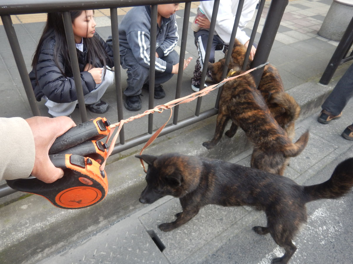 通りすがりの子どもたちに遊んでもらう、上から卓廚、妥蔵、祚是