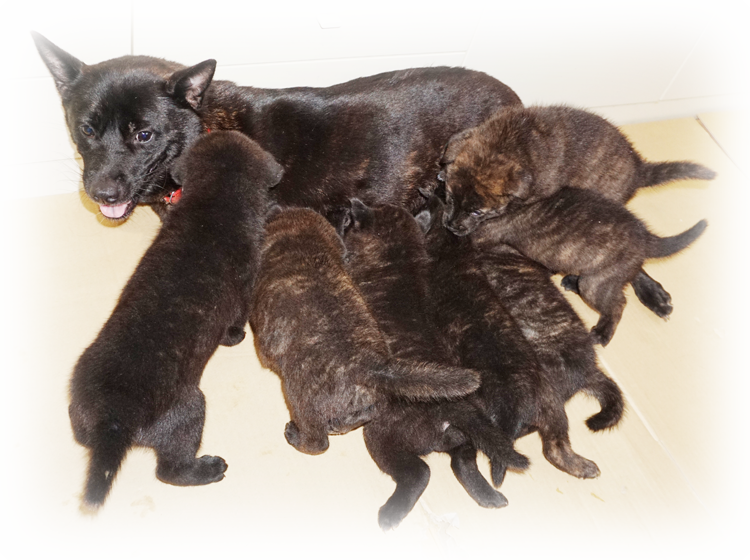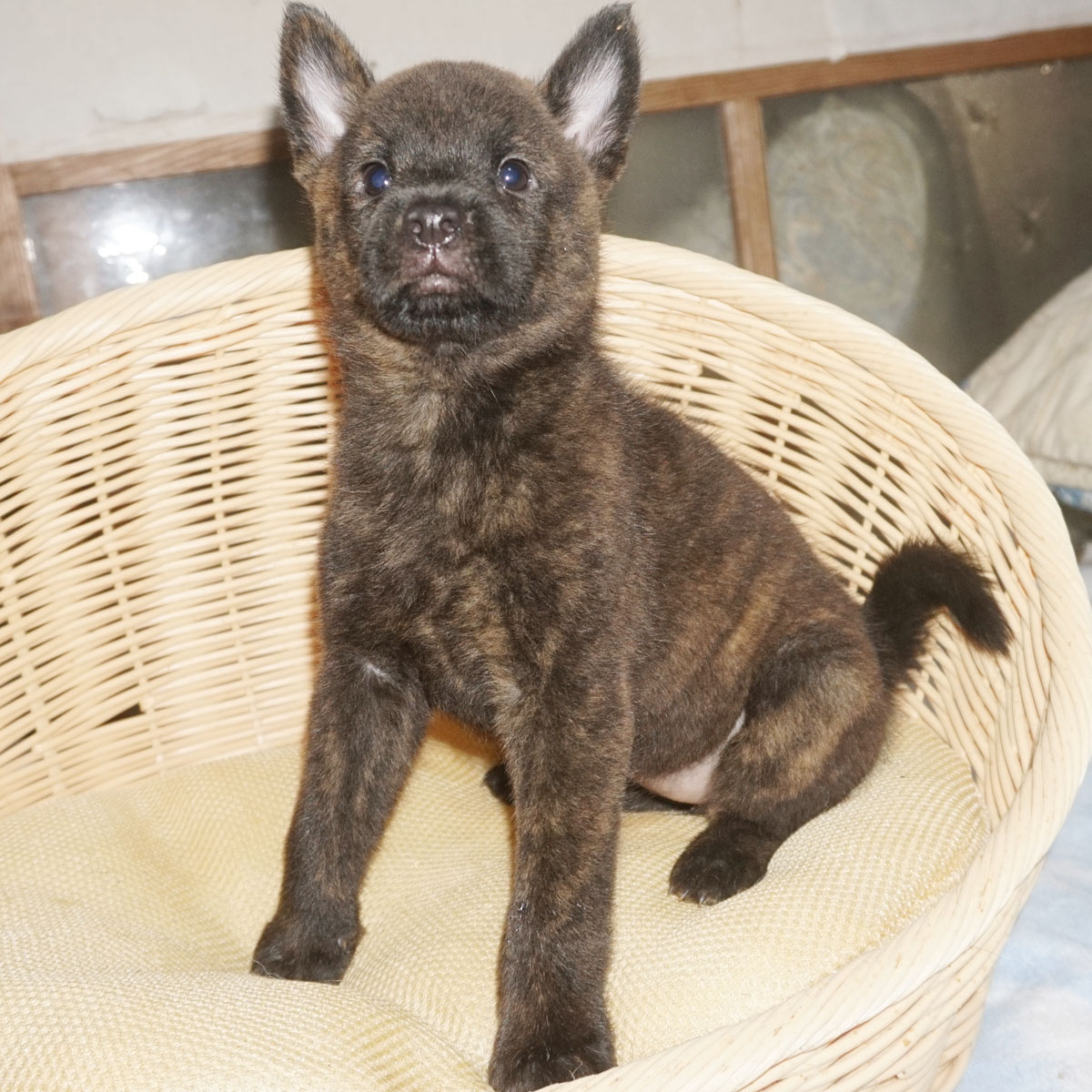 | 2025年9月1日、肥後国ノ江姫(呼び名=こうちゃん)が仔犬を出産しました。黒虎毛♂1頭、中虎毛♂1頭、♀1頭、赤虎毛♀4頭の計7頭です。毛色は成長と共に変化しますので、現在の所見からの予想です。血統登録は甲斐犬愛護会となります。肥後国ノ江姫は誰に対しても友好的で猟犬としても優れた素質を持ち、その母の母「香夏姫」は愛護会第145回展未成犬牝の部1席、母の父「龍州」は愛護会第153回展壮犬牡の部3席、母の母の母「讃岐ノ丸虎」は愛護会第146回展総合優良犬準優勝、母の父の父「暁龍」は愛護会第148回展壮犬牡の部1席、母の父の母「舞香」は愛護会第147回展壮犬牝の部1席、母の母の母の母「紅摩」は愛護会第130回展成犬牝の部1席、母の母の父の父「甲斐駒の龍」は愛護会第129回展未成犬牡の部3席、父の母「祈磨」および父の父「美倶佐」は救助犬として訓練中、父の母の母の母は東日本大震災による被災者捜索に出動した救助犬の「雲居の雁(2世)」、その息子「玄(Nuuk)」は日本から初めてフィンランドに行った甲斐犬でフィンランド、デンマーク、ドイツ、エストニア等のドッグショーでチャンピオン歴多数、父の父の母の母「甲斐の虎姫」は愛護会第140回展総合優良犬準優勝、父の父の母の父「国秀宝」は愛護会第146回展総合優良犬優勝、父の父の異父兄「黒龍神」は愛護会第153回展総合優良犬優勝、仔犬たちの父「薩摩乃倭」も肥後国ノ江姫同様、誰に対しても友好的で猟犬としても優れた素質を持ち、その母の母の母の父「夕霧」は救助犬、母の母の父の父「鉄海」は愛護会第140回展総合優良犬優勝、父の父の母の父「彩の神」は愛護会第137回展総合優良犬優勝、父の母の母の母「川崎ノ凛虎」は愛護会第126回展総合優良犬準優勝他、両親とも近親の賞歴等が多数あり、甲斐犬本来の優れた資質を持つ優良な血統です。近交係数約3.6346%のラインブリーディングで生まれた仔犬たちです。 | |||||||||||||||||||||||||||||||||||||||