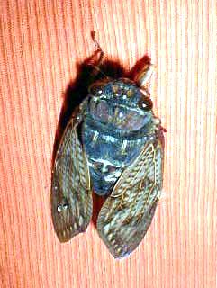 アブラゼミ Graptopsaltria nigrofuscata MOTSCHULSKY はんし [半翅目セミ科] 日本にいるセミは20種程だが、世界では1500種程記録されている。樹木の幹や枝に産み付けられた卵から孵った幼虫は土中にもぐり、樹木の根から液を吸って成長する。幼虫期間は2〜3年から、長いものでは北米のジュウシチネンゼミの様に10年以上のものもいる。鳴くのは♂だけ。成虫は1週間〜10日程しか生きない。 英名:cicada 分布:日本各地、朝鮮、中国北部 もっとも普通に見られる種で7月末〜8月に成虫が多く見られる。昼間ジージーとうるさく鳴くので夏が一層暑く感じられる。幼虫期間は約6年間。体長約60mm。 |