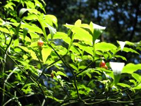 落葉低木。樹上に着生していることが多く、枝は緑色をしていて稜がある。花は5mm程で淡紅色のコップ状。果実は6mm程で黒紫色に熟し、艶があって美しい。