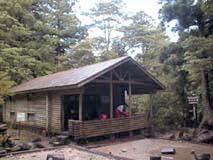 60人程泊れる木造の避難小屋です。水場はすぐ近くにあります。トイレは小屋の近くに男女兼用が1つあります。
