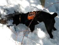 雪の中の人を探し出して吠える