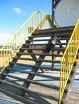 丸太の梯子を下りる