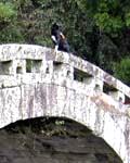 吊り橋を渡る