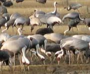 餌をついばむマナヅルの群