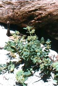 高さ20cm程。海岸の砂地に生育する常緑多年草。根が太く多くの茎が出る。茎は枝分れして太く、節が特に太くなり、葉は多肉質。