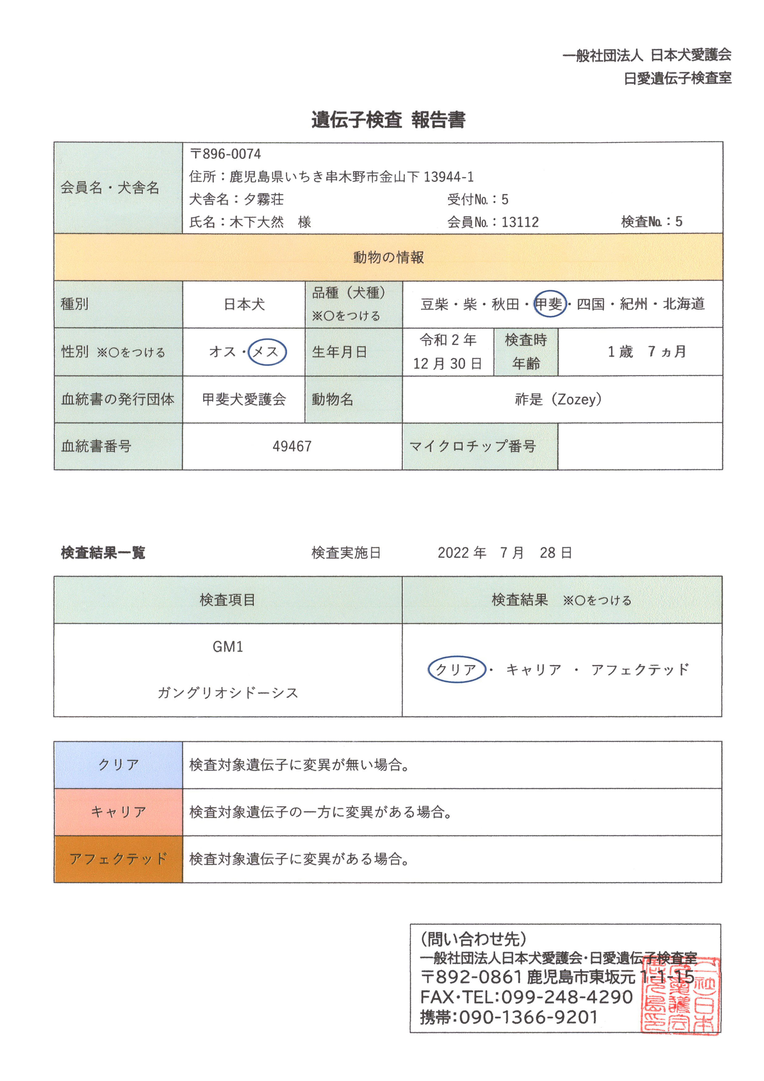 【犬籍登録・所属団体】甲斐犬愛護会