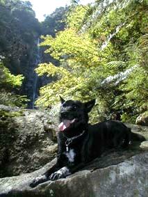 滝の近くで一休み