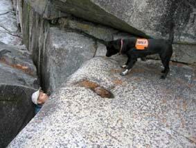 岩の割目に隠れた人を探し出す