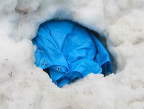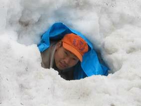 1.雪に穴を掘り、ブルーシートに包まって隠れる ![]() |