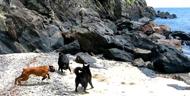 (トローキの滝付近)![]() 自分たち以外誰もいない砂浜で、思う存分走り回って遊ぶ |