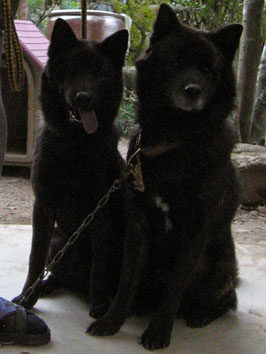 向かって左側は姫ちゃんの子で右側は四国から来た犬。どちらも牡だが他人や他の犬にも友好的。四国から来た犬は猪型のように見える。