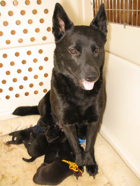 雁は子煩悩で仔犬たちの面倒をよく見る