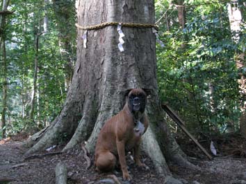 発心門王子社跡のイチイガシ巨木の前で