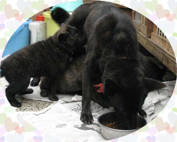 仔犬たちへの授乳もあと数日に……