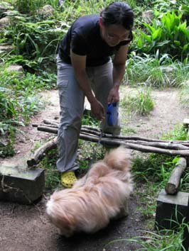 「渡って」の号令でシーソー渡りをする![]() 板は幅20cm、長さ4m、支点の高さは60cm |