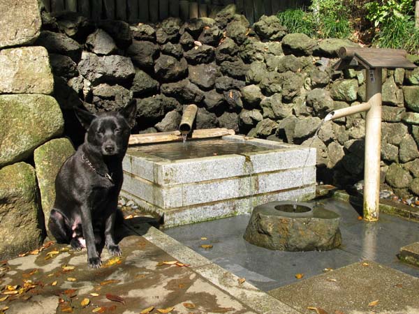 美味しい湧き水をたっぷり飲んでご満悦の体