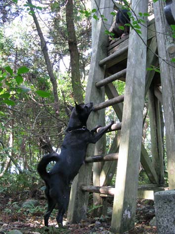高所に隠れたヘルパーを捜し出して吠える