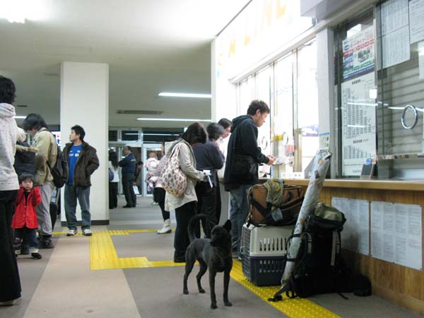 乗船、見送りの人で混雑する中で馴致訓練