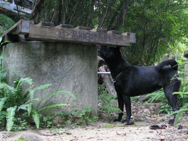 溜枡の中に隠れたヘルパーを捜し出して吠える