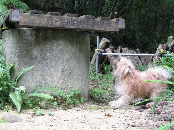 溜枡の中に隠れたヘルパーを捜し出して吠える