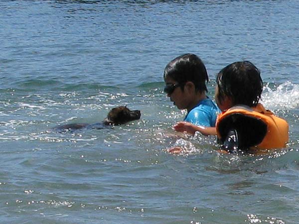 2010年8月24日(屋久島 湯泊漁港付近)![]() 海で知人たちに遊んでもらい泳ぐ(環境と他人への馴致、水泳訓練) |