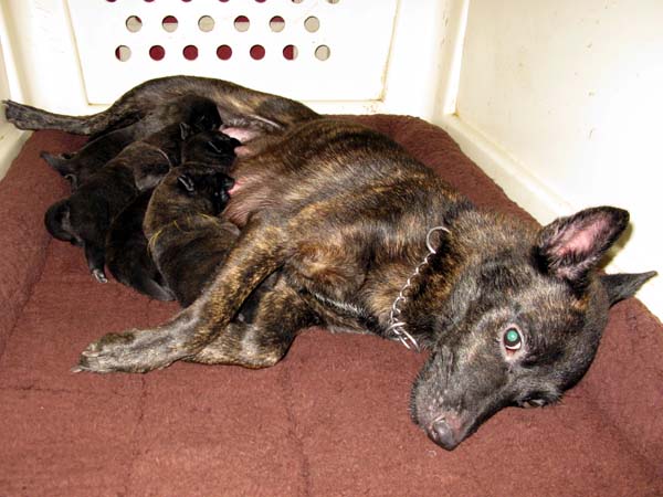訓練も意欲的にしながら、仔犬たちにも愛情を込めて授乳する