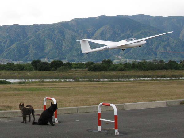 2010年11月1日(岐阜県揖斐郡大野町 揖斐川河川敷)![]() 離陸するグライダーの傍で(環境への馴致訓練) |