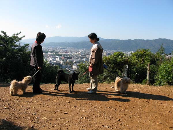 2010年11月4日(京都府京都市右京区)![]() 国指定名勝「雙ヶ岡(ならびがおか)」で服従訓練をしながら散歩 左からドルジェ、雲居の雁(2世)、無垢 |