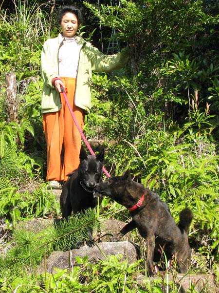 2011年3月31日(屋久島町安房樋ノ口)![]() 夕霧と交配するために福岡市から来た「紅虎嬢」号(右)と遊ぶ |