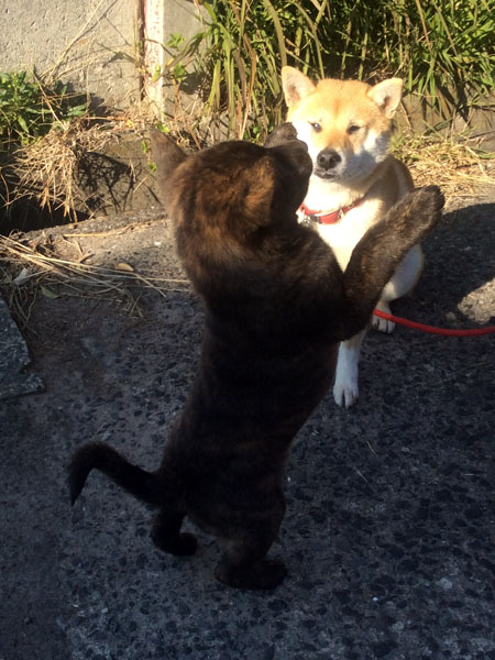 近所の知人と柴犬「さくら」ちゃんと遊ぶ