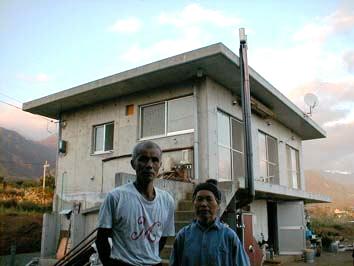 奥様は福島県郡山市出身です。彼女は鍼灸術の有資格者で、現在ここで治療院を開いています。 ここは開けていて山も海もとても良く見えます。それだけに台風の影響も大きいのですが、鉄筋コンクリートでしっかりと造られたこの家ならびくともしません。