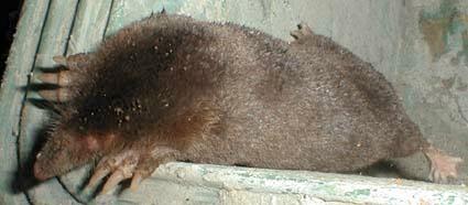 コウベモグラ [食虫目モグラ科] 分布:朝鮮半島南部、本州中部以西、九州、四国、対馬、種子島、屋久島 体長125〜185mm。東日本に住む日本特産種アズマモグラより一回り大きい。モグラは肉食性で土中のミミズ、昆虫などを食べる。小型な上に土を掘りながら移動するため非常に高エネルギーを必要とし、一日に自分の体重と同じくらいの食物を食べる。また食物を探すために非常に広範囲を移動し、そのテリトリーは1ha以上に及ぶと言われている。 |