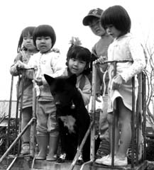 ↑子供たちと遊ぶ(他人への馴致訓練)