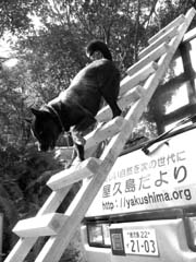 「屋久島山岳遭難防止対策協議会において、8月6日以下の事が確認合意されました。1.屋久島の山岳遭難においては、救助犬の活用は考えにくい。もし、必要であれば警察が訓練している救助犬あるいは、警察が訓練を委託している救助犬を活用する。2.屋久島の自然・生態を保全する立場から屋久島では山岳部へ動物を持ち込むべきではない。尚、このことにつきましては木下大然氏に屋久島山岳遭難防止対策協議会会長よりお知らせしています。」
