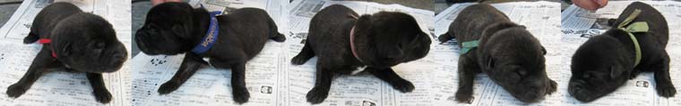 MBdog候補の1頭「雲居の雁2世」は残念ながら偽妊娠でしたが、ほぼ同時期に交配したその母犬「甲斐屋久の夏姫」が妊娠していて、7月4日に牡2頭、牝3頭の元気な仔犬たちを出産しました。