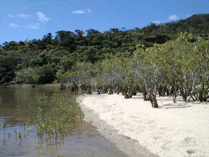 マングローブ林を構成する一樹。常緑小高木で高さ3〜5m。種子は樹上で発根し、落下した時土壌に突き刺さって成長する。また海流によって遠くまで運ばれ定着することもあると言われている。 マングローブ林は「紅樹林」とも呼ばれ、熱帯から亜熱帯の汽水域に広く分布する。潮間帯の砂泥質で通気性が悪く未分解の有機物を多く含んでいる土地に生育する。マングローブ林の構成種は北に行くに随い減少し、屋久島ではメヒルギのみが生育している。メヒルギ群落の北限は北緯32度に当る薩摩半島の喜入町である。 左下の写真は、花と一緒に前年の実が発根して10cm程に成長したものが付いている。