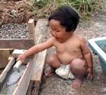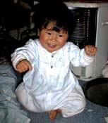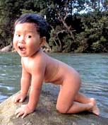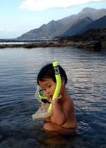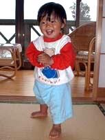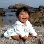 | 倭賢は砂遊びが大好き!砂浜に行くと一人でいつまでも遊んでいます。この日は田代海岸に行って遊びました。最近は人の顔を見ながら両目を一瞬閉じて、にっこり笑いかける仕草をよくします。 |