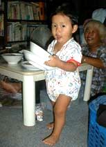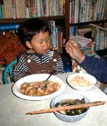 | 倭賢の一歳の誕生日。大した病気や怪我もなく、元気でここまで成長してくれたかと思うと感慨もひとしお。スプーンとフォークをプレゼントしたら嬉しそうに握り締めていました。一人で食事が出来るようになるのももうすぐかしら? |