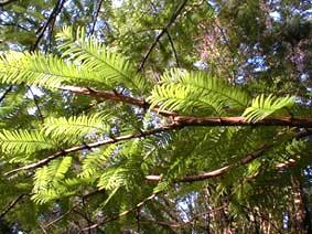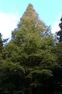 メタセコイア(アケボノスギ) Metasequoia glyptostroboides HU et CHING. [スギ科メタセコイア属] 分布:中国四川省 開花期:2〜3月 用途:枕木、公園樹、並木、建築、器具材、家具、薪炭 1945年、揚子江の一支流磨刀渓の奥地で発見された落葉高木。自生地では高さ35m、直径2.5mになるものもある。生きている化石として有名。日本の第三紀層(約6500万年前〜200万年前に生じた地層)から化石が見つかっており、1941年に三木茂博士がこの属名を与えた。自生地の種子をアメリカで育成したものが、1949年秋に日本に100本送られてきて、以後挿木繁殖によって全国に広まった。樹皮は赤褐色で縦に裂ける。枝や葉は対生し、小枝は秋に葉と一緒に落ちる。果実は長さ20〜25mmの卵状球形。 |