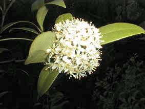 雌雄異株の常緑低木。山地に生える。葉は互生に出て長楕円形で厚い。花は白色で芳香がある。果実は直径約8mmで晩秋に赤く熟す。