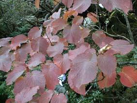 ムシカリ(オオカメノキ) Viburnum furcatum BLUME [スイカズラ科ガマズミ属] 分布:北海道、本州、四国、九州、千島、サハリン、朝鮮(屋久島が南限) 開花期:4〜6月 用途:弓、輪かんじき、薪炭 落葉低木。山地に生え、高さ2〜5mになる。枝は紫褐色で横に広がる。葉は対生し、長さ10〜15cmの卵円形で、縁に鈍鋸歯がある。枝先から散房花序を出して小さな両性花を付け、縁を直径約3cmの白い装飾花が取り巻く。花序の柄はない。果実は約8mmの球形または楕円形で、秋に赤色から黒色に熟す。 |
