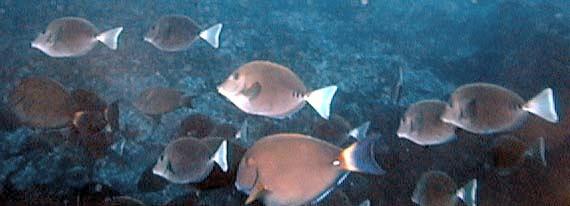 全長35cm程。体は強く側扁する。尾柄の各側には3個の固い楯状突起があり、その周囲は黒い。皮膚は獣毛状の小さなうろこで覆われる。写真下中程に一番大きく写っているのはニザダイ科のニセカンランハギ。