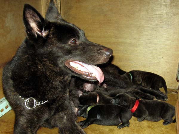 2008年7月4日に甲斐屋久の夏姫(呼び名=なつ)が仔犬を出産しました。♂2頭、♀3頭です。血統登録は甲斐犬愛護会(天然記念物指定)となります。交配相手は野乃嵐(呼び名=チロ)で、ラインブリーディング(近交係数3.125%)で生まれた仔犬たちです。 夏、チロは救助犬の訓練をしています。 こちらでは救助犬の育成をしていますので、主に運動能力と性格を重視して繁殖しています。救助犬と言っても普段は家庭犬として暮らしていますので、その辺も十分に考慮して繁殖、訓練をしていますのでご安心ください。生まれてから里子に出すまでの間も犬の社会を学びながら人や環境に慣れるための重要な時期ですので、毎日多くの人の手に触れさせたり、環境に馴致させたりしています。 お渡しするまでに、獣医師による健康診断、混合ワクチン接種、腸管寄生虫(コクシジウム等含む)の駆虫を済ませます。詳細につきましては直接お問い合わせください。 |