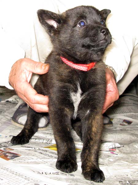 2009年1月14日に甲斐屋久の夏姫(呼び名=なつ)が仔犬を出産しました。黒虎または中虎♂1頭、♀4頭、赤虎♂1頭です{前胎は皆仔犬のうちは黒っぽかったのですが、大きくなるにつれて皆虎毛がはっきりしてきました(前胎の奄美の守卯)}。血統登録は甲斐犬愛護会となります(日本犬保存会へ移籍可)。なつは救助犬として訓練しており、エコツアーに同行して救助犬の広報、宣伝のために頑張っています(夏の健康管理と訓練日誌)。交配相手は同じく屋久島で救助犬として訓練している野乃嵐(呼び名=チロ)で、その父犬は甲斐犬愛護会の第109回展覧会壮犬牡の部2席となっています(チロの健康管理と訓練日誌)。両親とも優良な血統で、遺伝的な障害も見られず極めて健康です。ラインブリーディング(近交係数3.125%)で生まれた仔犬たちです。 |