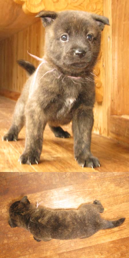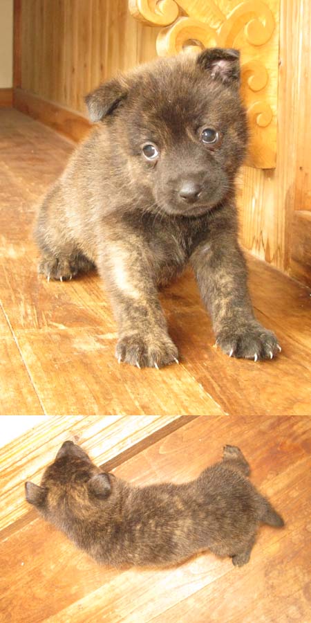 2011年5月3日に奄美の守卯(呼び名=しゅう)が仔犬を出産しました。赤虎毛♂2頭、♀3頭、黒虎毛♀1頭です。毛色は成長と共に変化しますので、現在の所見からの予想です。血統登録は甲斐犬愛護会となります(日本犬保存会へ移籍可)。守卯は初め奄美大島のジャワマングース防除犬として訓練を進めていましたが、その後救助犬としても訓練を進め、現在は屋久島でエコツアーに同行して救助犬の広報、宣伝のために頑張っています。ツアー参加者や周りの観光客からは守卯がいることで場が和む、癒されると大変喜ばれています(守卯の健康管理と訓練日誌)。交配相手は同じく屋久島で救助犬として訓練している赤虎毛の「夕霧」で、守卯と共に近親の賞歴等が多数あります(夕霧の健康管理と訓練日誌)。両親とも優良な血統で、遺伝的な障害も見られず極めて健康です。ラインブリーディングに近いインブリーディング(近交係数4.3945%)で生まれた仔犬たちです。 |