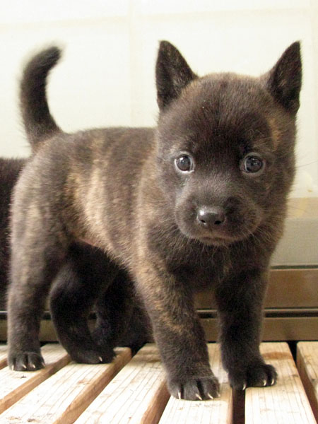 2013年10月12日に雲居の雁(2世){呼び名=雁(かり)}が仔犬を出産しました。中虎毛♂1頭、赤虎毛♀1頭です。血統登録は甲斐犬愛護会となります(日本犬保存会へ移籍可)。雁は救助犬として屋久島の遭難者捜索に関わったり、エコツアーに同行して救助犬の広報、宣伝のために頑張っています。ツアー参加者や周りの観光客からは雁がいることで場が和む、癒されると大変喜ばれています(雁の健康管理と訓練日誌)。交配相手は同じく屋久島で救助犬として訓練している赤虎毛の「夕霧」で、雁と共に近親の賞歴等が多数あります(夕霧の健康管理と訓練日誌)。両親とも優良な血統で、遺伝的な障害も見られず極めて健康です。ラインブリーディング(近交係数2.4414%)で生まれた仔犬たちです。