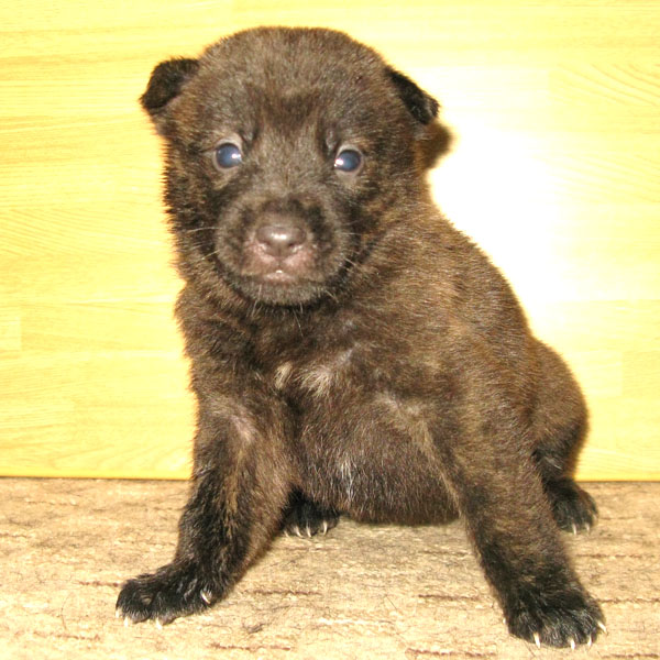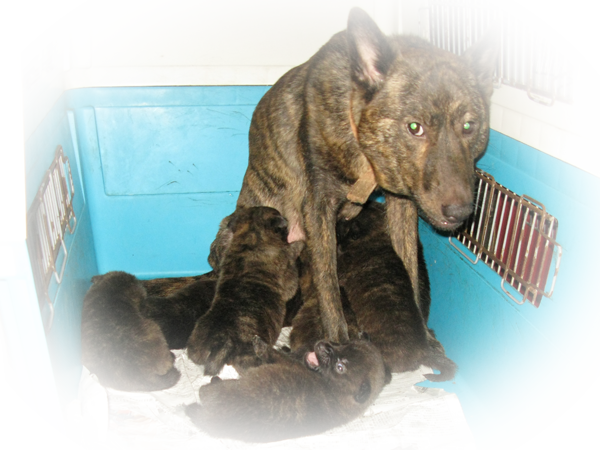 2018年5月27日に高竜乃朧月夜{呼び名=月(つき)}が仔犬を出産しました。♂4頭、♀3頭の計7頭です。毛色は成長と共に変化しますので、現在の所見からの予想です。血統登録は甲斐犬愛護会となります(日本犬保存会へ移籍可)。月は救助犬として訓練途上ですが、動物は子育てをすることで記憶力などの学習能力が向上することが証明されていますので、今後の訓練と活躍に期待しています(月の健康管理と訓練日誌)。交配相手は同じく救助犬として訓練している赤虎毛の「夕霧」で、月と共に近親の賞歴等が多数あります(夕霧の健康管理と訓練日誌)。両親とも優良な血統で、遺伝的な障害も見られず極めて健康です。ラインブリーディング(近交係数約1.3672%)で生まれた仔犬たちです。 |