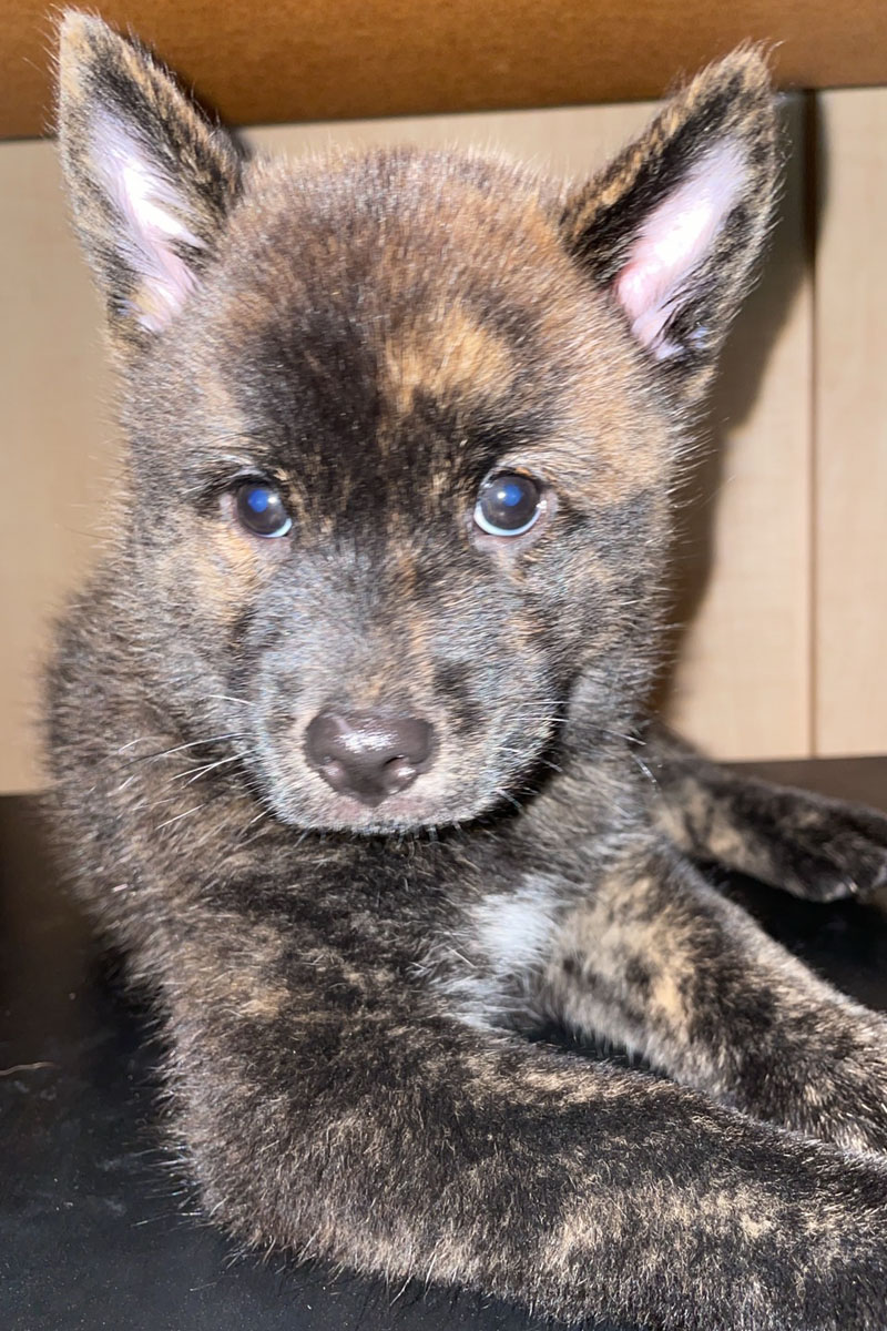 2022年7月28日、剣乃ペコ(呼び名=ペコ)が仔犬を出産しました。赤虎毛♂1頭、中虎毛♀1頭の計2頭です。毛色は成長と共に変化しますので、現在の所見からの予想です。血統登録は甲斐犬愛護会となります(日本犬愛護会等へ移籍可)。ペコの先祖は代々優れた猟犬として使役され、ペコもその跡を継いでいます。交配相手は赤虎毛の「美倶佐」で、ペコと共に近親の賞歴等が多数あり、甲斐犬本来の優れた資質を持つ優良な血統です。近交係数約0.0977%のアウトブリーディングで生まれた仔犬たちです。 |